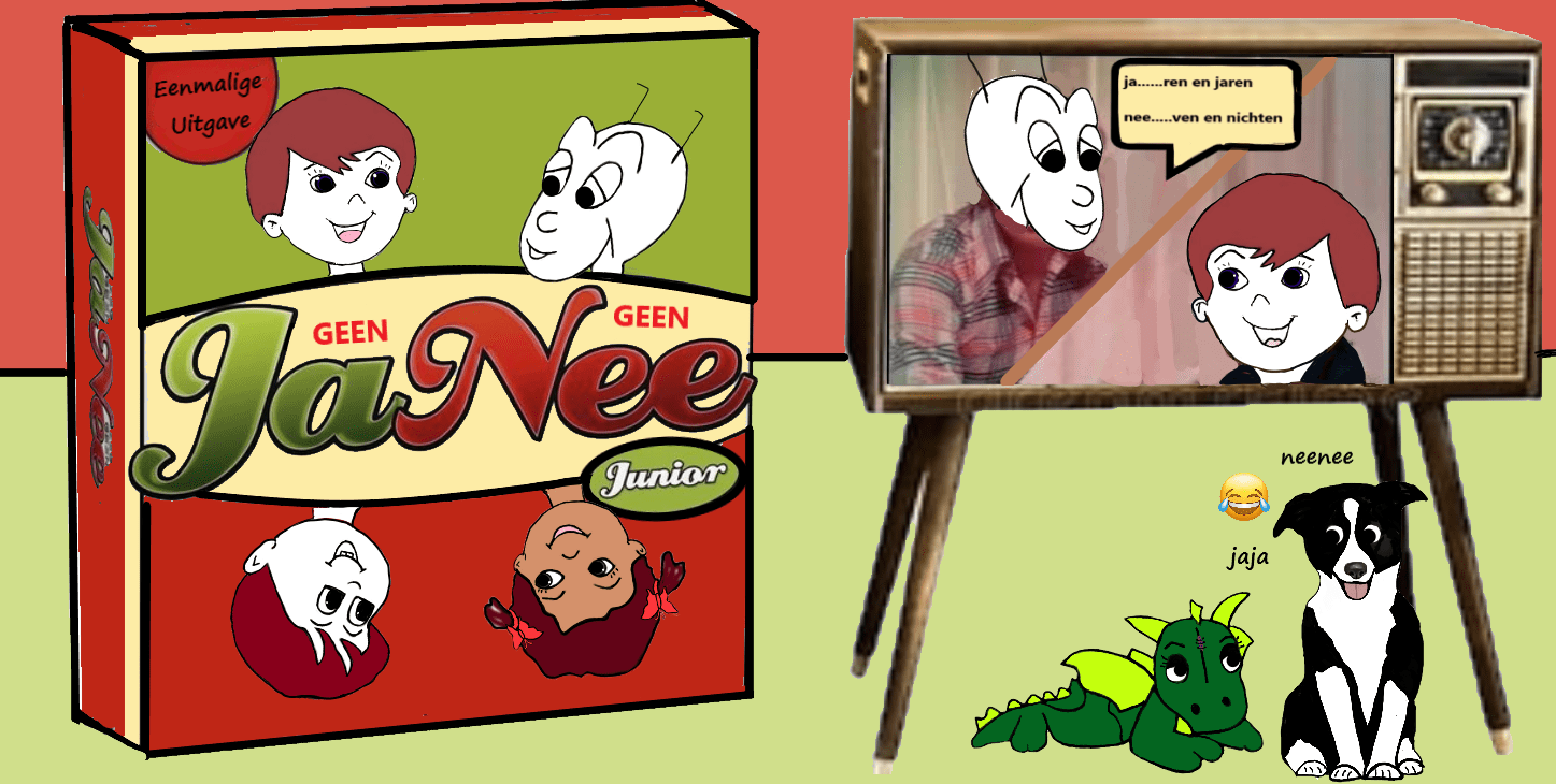 Oma zit op tv naar een heel oud tv spel te kijken, geen ja geen nee heet het. Je mag dan de woordjes ja en nee niet gebruiken. Dit lijkt ze een super spel! Wie af is moet dan weerde slimme sluwe vragen stellen. Oma begint.