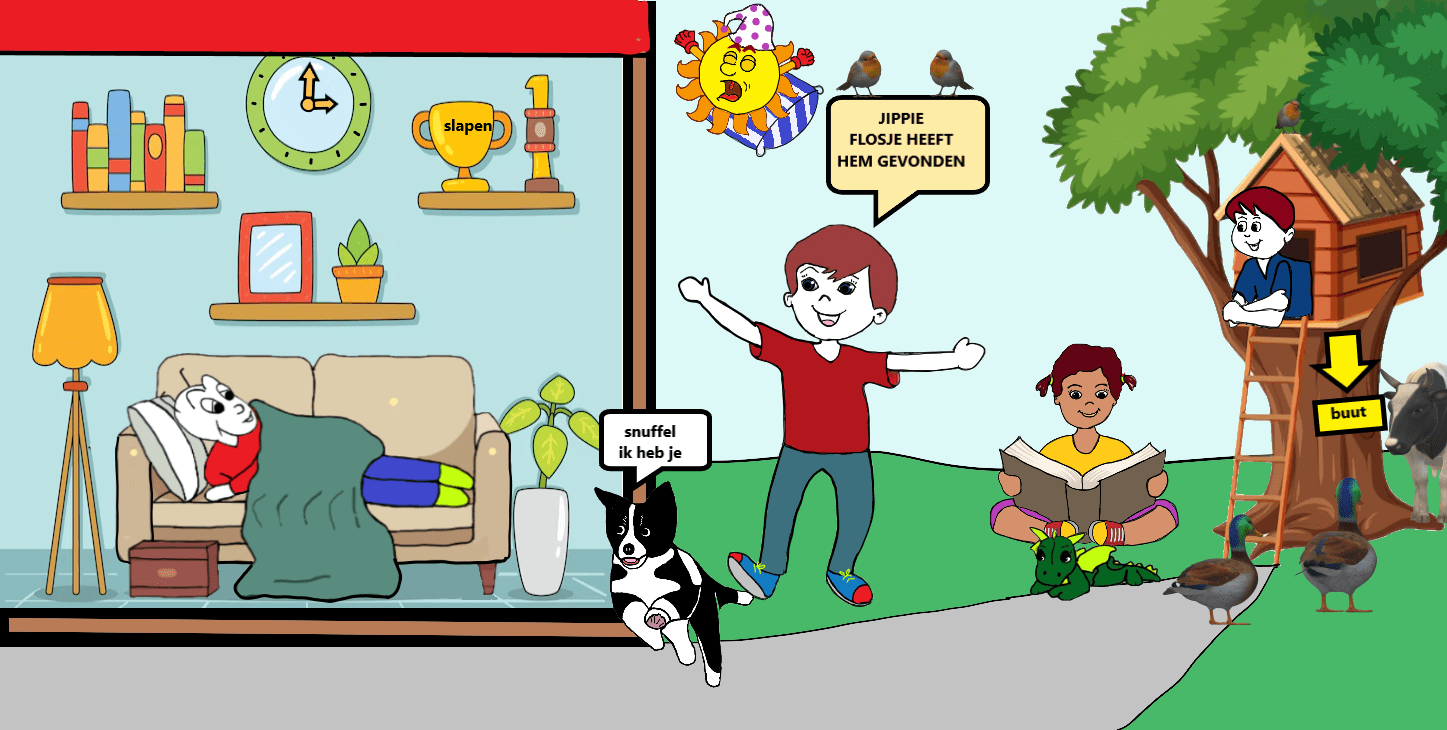 Ze spelen verstoppertje Flosje mag niet echt meedoen, want een hond kan heel goed ruiken en speuren en dat zou niet eerlijk zijn. Maar dan ze zijn Heer Krekel kwijt, wat is er gebeurd?