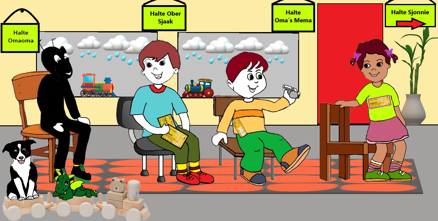 Ze gaan vandaag met de stoelentrein op reis. Dan moeten er wel kaartjes gemaakt en gekocht worden en daar zijn ze gisteren druk mee bezig geweest. Heer Krekel is soms best slordig en raakt van alles kwijt ook zijn kaartje of toch niet?
